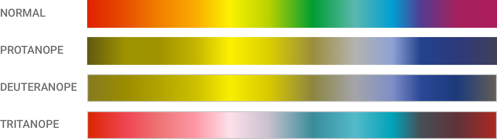 Not everyone sees colors in the same way. Some people can only see certain colors as shades of grey and others don’t see some colors when they are paired with other colors. Therefore, to help ensure accessibility for the majority of screen viewers follow these guidelines: