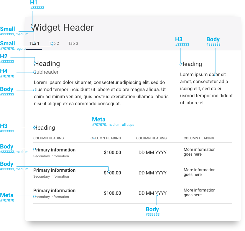 H1 | 32px | 40px | Widget Headers |