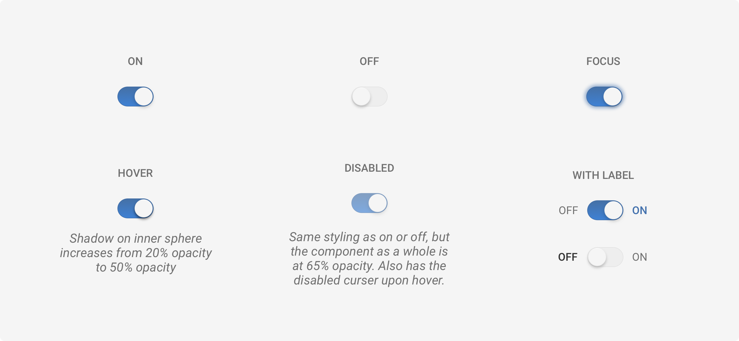 | Off Background | $toggle-fill=#EEEEEE $toggle-border=#E0E0E0 |